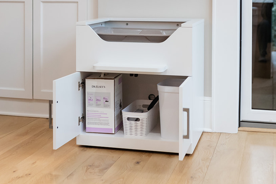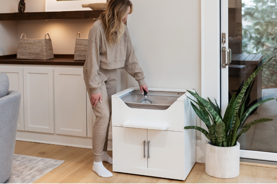 Cat parents deserve a cat litter box solution that reduces bending, stooping, and strain, while offering a stable, ergonomic, back-saving litter box setup.