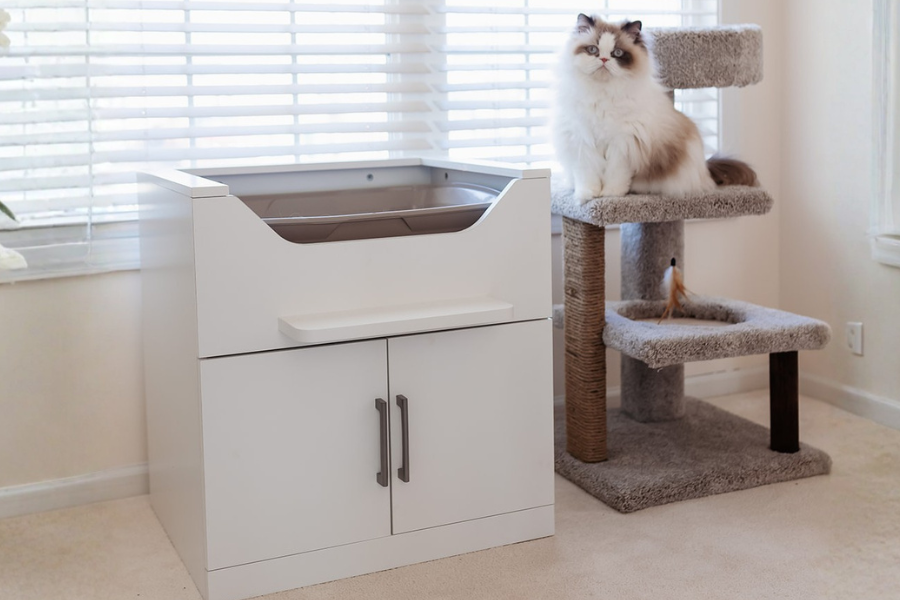 More cat parents are now seeking cat litter boxes that combine accessibility, modern design, and practicality—options such as senior-friendly litter boxes, disability-friendly setups, raised or elevated litter boxes, ergonomic cat furniture, dog-proof litter box designs, and space-saving litter box furniture.