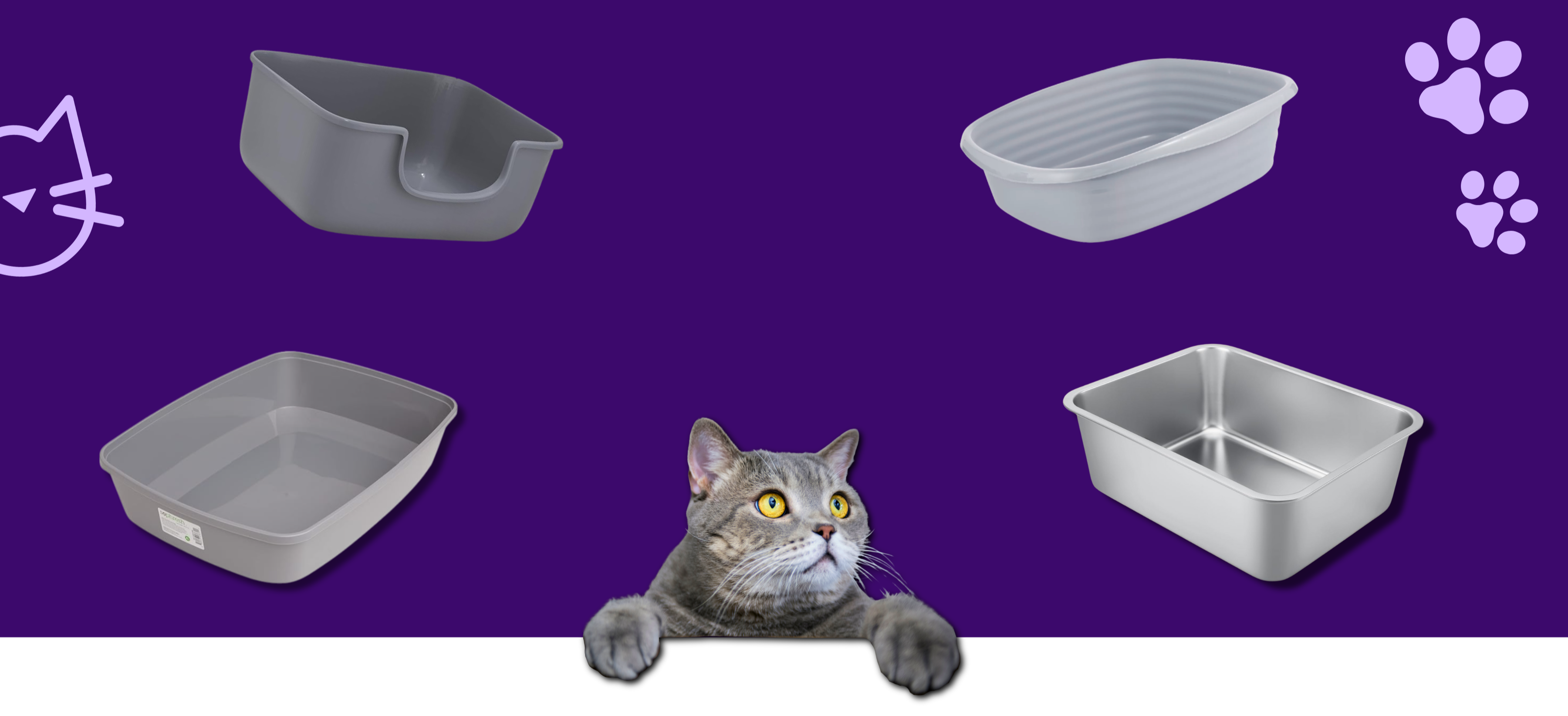 For the best fit, for both you and your cat, we recommend open plastic pans under 22.8" L, no more than 17" W, and no more than 6.5" H. High-sided pans work too if under 20" L and no more than 17" W. Want an XL stainless (23–24" L) or covered box? Email us for setup tips!