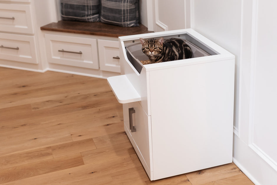 “Litter boxes do not belong on the floor. Floor-level boxes give too many other pets access—and that’s a problem.”